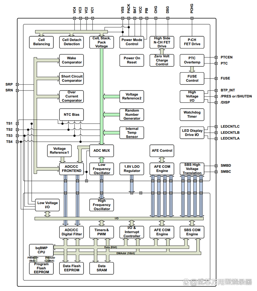 bq40z50 器件采用已获专利的 Impedance Track™ 技术,是一款基于电池组的单芯片全集成解决方案,针对1 节、2 节、3 节和 4 节串联锂离子或锂聚合物电池组提供电量监测、保护及认证等一些列丰富的功能。